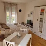 房间配有梳妆室,咖啡机/煮茶器 和写字台,它还有配电子热水壶,咖啡壶/茶壶 和冰箱的小厨房. 公寓共有1间卧室,配有1间浴室,配备坐浴盆,分开的洗手间 和淋浴.